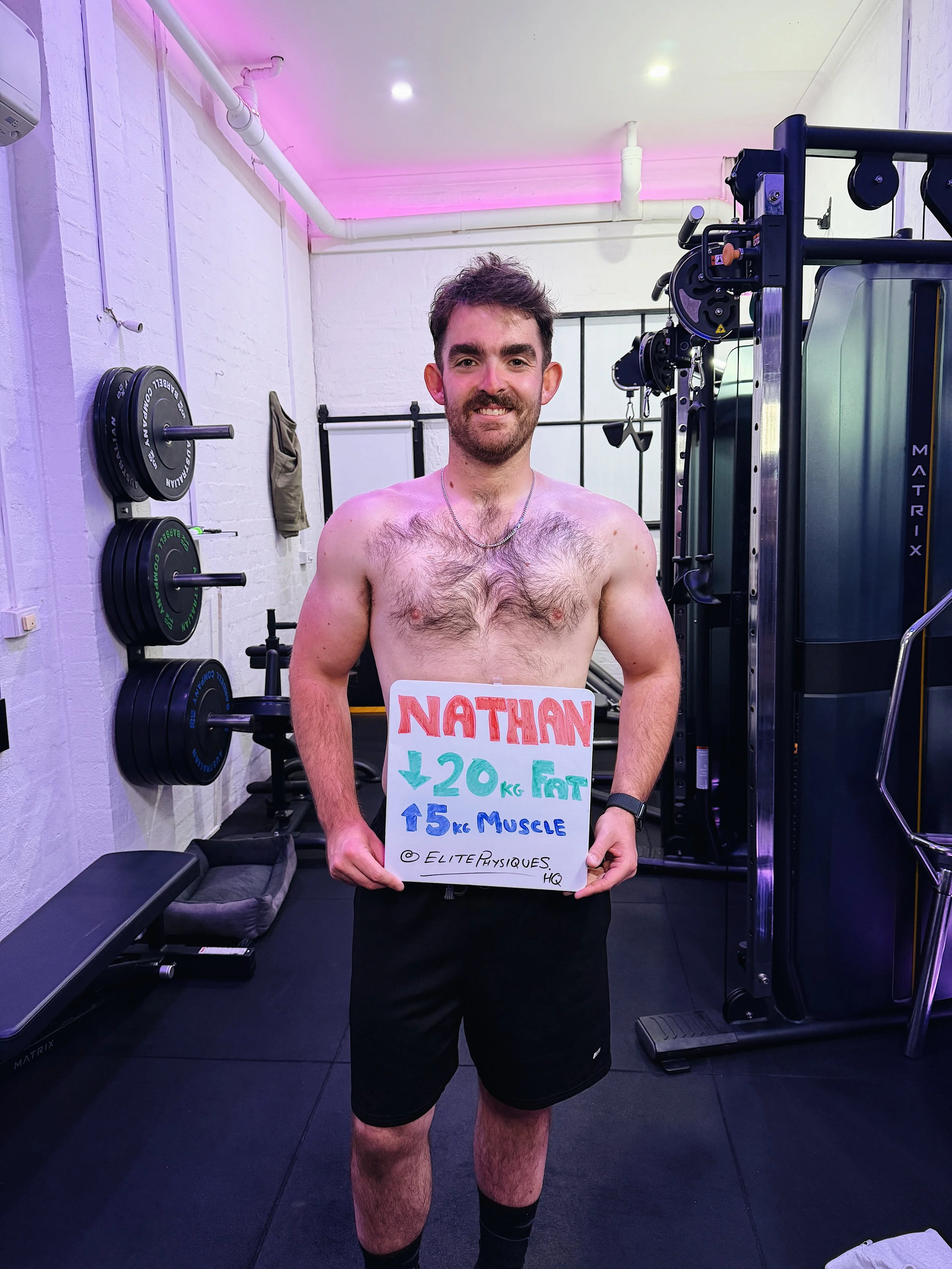 Whilst At Elite Physiques HQ in Elwood, our clients Nathan dropped 20kg of fat, added 5kg of lean muscle, and rebuilt his confidence. All without extreme dieting or burning out in the gym.